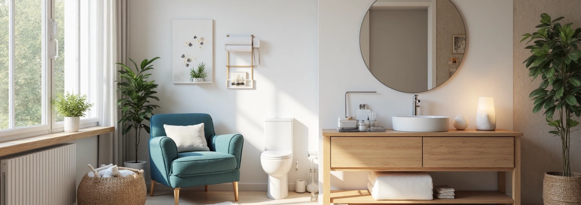 La hauteur des équipements sanitaires doit être ajustée : des toilettes surélevées (entre 45 et 50 cm de hauteur) et un lavabo sans colonne permettent un usage plus confortable. Une douche à l’italienne avec un siphon de sol et un espace suffisant pour un fauteuil roulant est préférable à une baignoire.