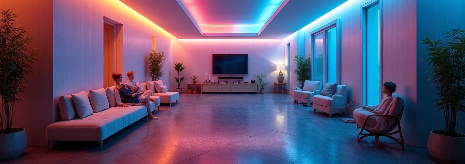 La technologie RGB+CCT (Red, Green, Blue + Correlated Color Temperature) offre une palette de couleurs quasi illimitée, combinée à la possibilité d’ajuster la température de couleur. Cette flexibilité permet de créer des ambiances variées et dynamiques, adaptées à différentes situations. Par exemple, dans un espace de travail, on peut passer d’une lumière blanche et froide pour stimuler la concentration à une ambiance plus chaleureuse pour des moments de détente.