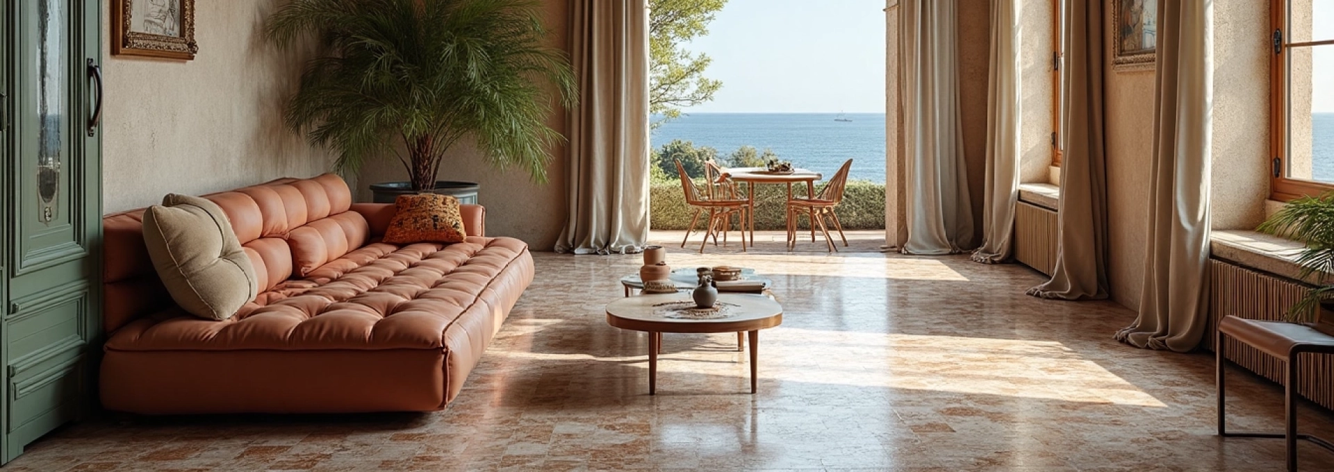 Le cuir florentin, réputé pour sa qualité et sa durabilité, est un incontournable de la décoration italienne. Qu’il s’agisse d’un canapé majestueux ou de fauteuils club confortables, le cuir apporte chaleur et sophistication à votre espace de vie. Optez pour des teintes riches comme le cognac ou le bordeaux pour une ambiance vraiment italienne.